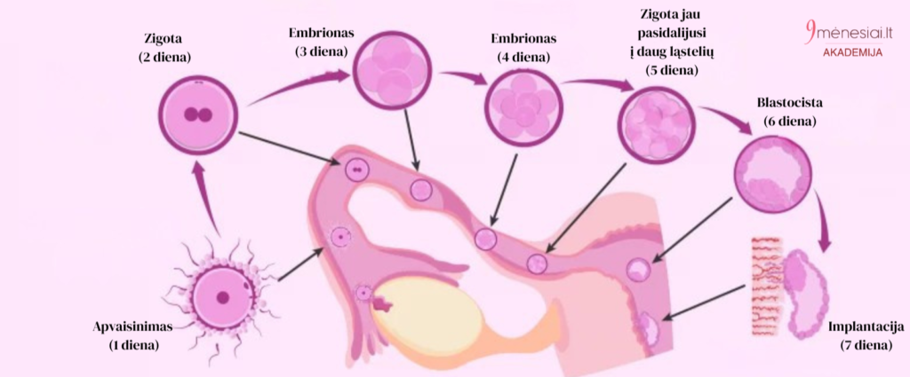 Per kelias dienas ši ląstelė pradeda dalintis ir po truputį keliauja į gimdą, kur vėliau prisitvirtins.
