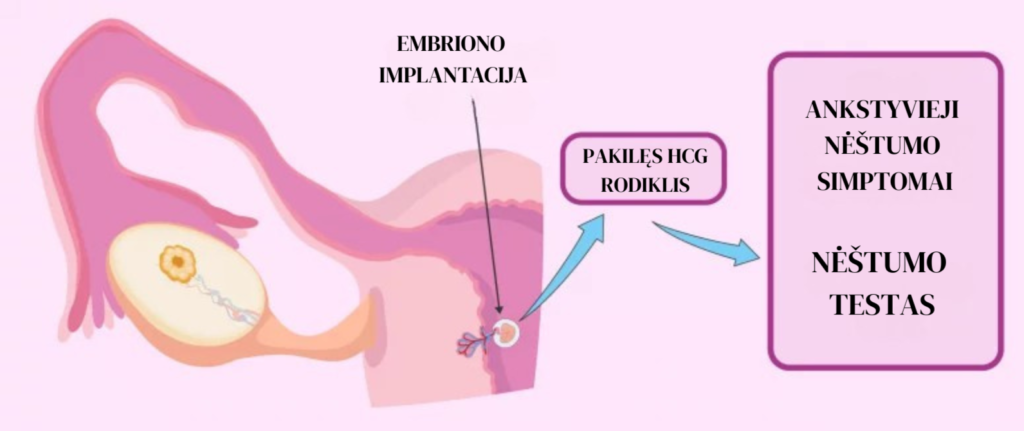 Maždaug po savaitės nuo ovuliacijos apvaisintas kiaušinėlis jau būna pasiekęs gimdą ir prisitvirtina prie jos sienelės. Šis momentas vadinamas implantacija – būtent tada iš tikrųjų „prasideda“ nėštumas.