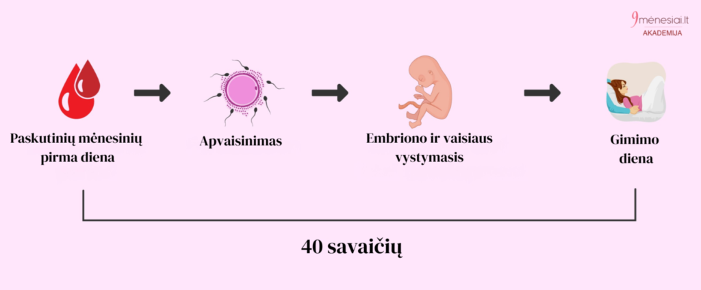 Nėštumas skaičiuojamas nuo pirmos paskutinių mėnesinių dienos, nors techniškai pastojama antroje ciklo pusėje.